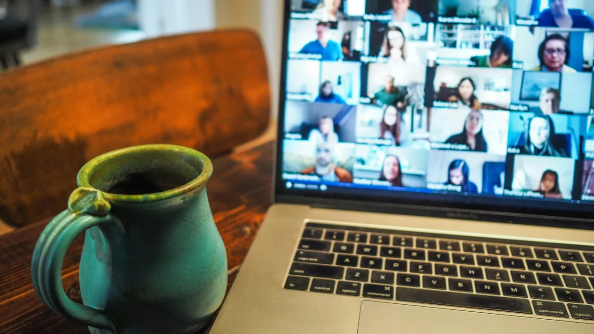 Online an einem Tisch im direkten Austausch mit Mirjam Cordt zur themenspezifischen Wissensvermittlung und zum Vertiefen der Lerneinheiten.